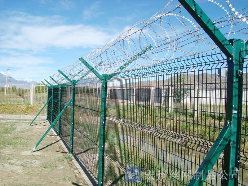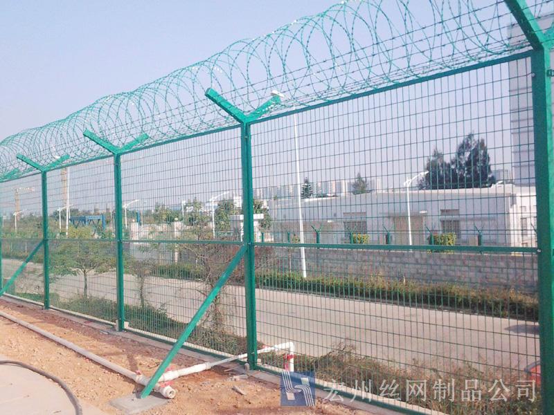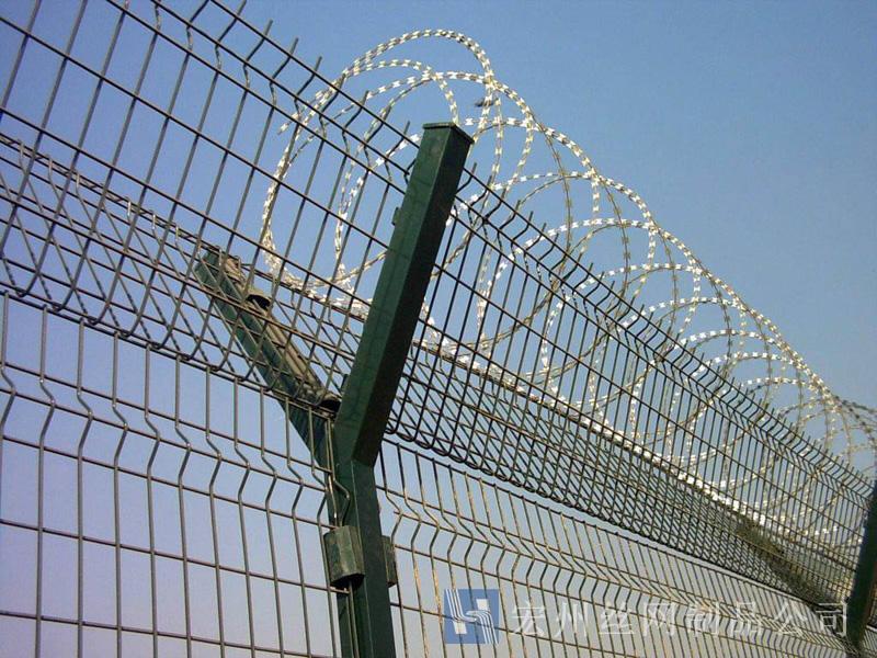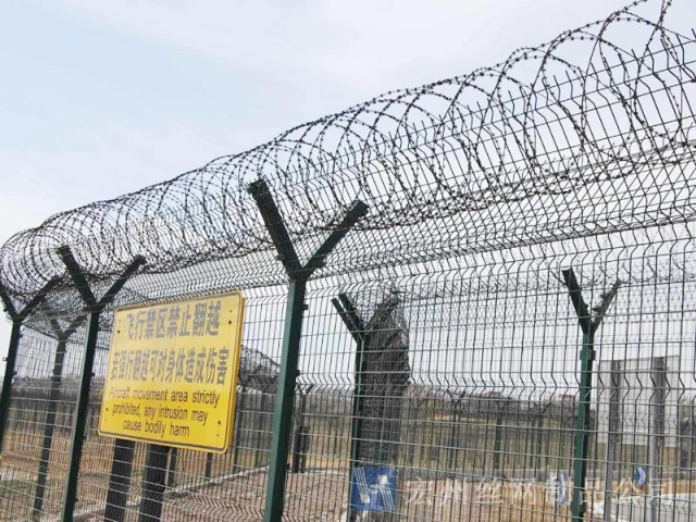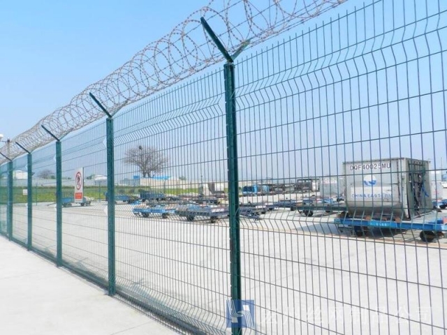 機場鐵絲圍欄網(wǎng)產(chǎn)品具有:美觀、大方、防腐性好、易保養(yǎng)、防攀爬能力強。近年來,被廣泛應(yīng)用在機場,軍事基地等高安全場所。注:假如在機場護欄網(wǎng)頂部加裝刀片刺絲、刀片刺繩后又很好的增強了安全防護機能。