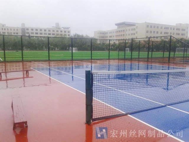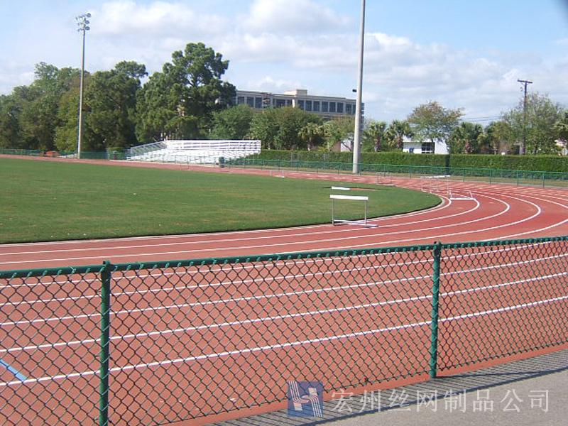 【田徑場圍網(wǎng)】是選用優(yōu)質(zhì)低碳鋼絲編織焊接而成。采用防盜螺栓卡接、扁鐵固定、組裝掛鉤方式連接。經(jīng)過電鍍、熱鍍、噴塑、浸塑處理,具有防腐、防老化、抗曬、耐候、色彩鮮亮、網(wǎng)面平整,強力張緊,不易受外力撞擊變形、現(xiàn)場施工安裝、靈活性強(可根據(jù)現(xiàn)場要求隨時調(diào)整造型和尺寸)等優(yōu)勢。