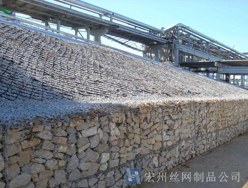 石籠網(wǎng)也稱重型六角網(wǎng)、擰花網(wǎng)、格賓網(wǎng)、三絞節(jié)機(jī)編網(wǎng)、雙絞格網(wǎng)是金屬線材編織的角形網(wǎng)(六角網(wǎng))制成的網(wǎng)箱,使用的金屬線徑是根據(jù)六角形的大小而不同.如果是金屬鍍層的金屬線六角形,則使用線徑為2.0mm到4.0mm的金屬線,如果是PVC包覆的金屬線編織的六角網(wǎng),則使用外徑為3.0mm到4.5mm的PVC(金屬)線.外框邊緣的線則使用比六角網(wǎng)線粗一號的線。